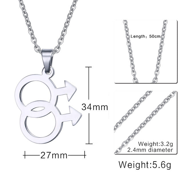 This is a stainless steel made necklace with link chain. The pendant size is 27mmx34mm. It is a great gift for the LGBT folks in your life. This item is NOT sold in stores! Guaranteed Safe Checkout: PAYPAL | VISA | MASTERCARD | AMEX | Discover Click ADD TO CART To Order Yours NOW! 100% Satisfaction Guaranteed With Every Order. *Due to high demand please allow up to 3-4 weeks for delivery. This Item ships from our international supplier.